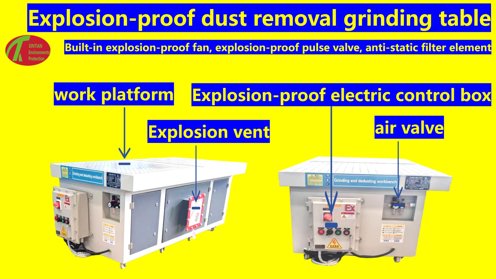 Kompaktní konstrukce: Plochý brusný stůl pohlcující prach zabírá malou plochu a je vhodný pro různá pracoviště, zejména dílny nebo ateliéry s omezeným prostorem.
