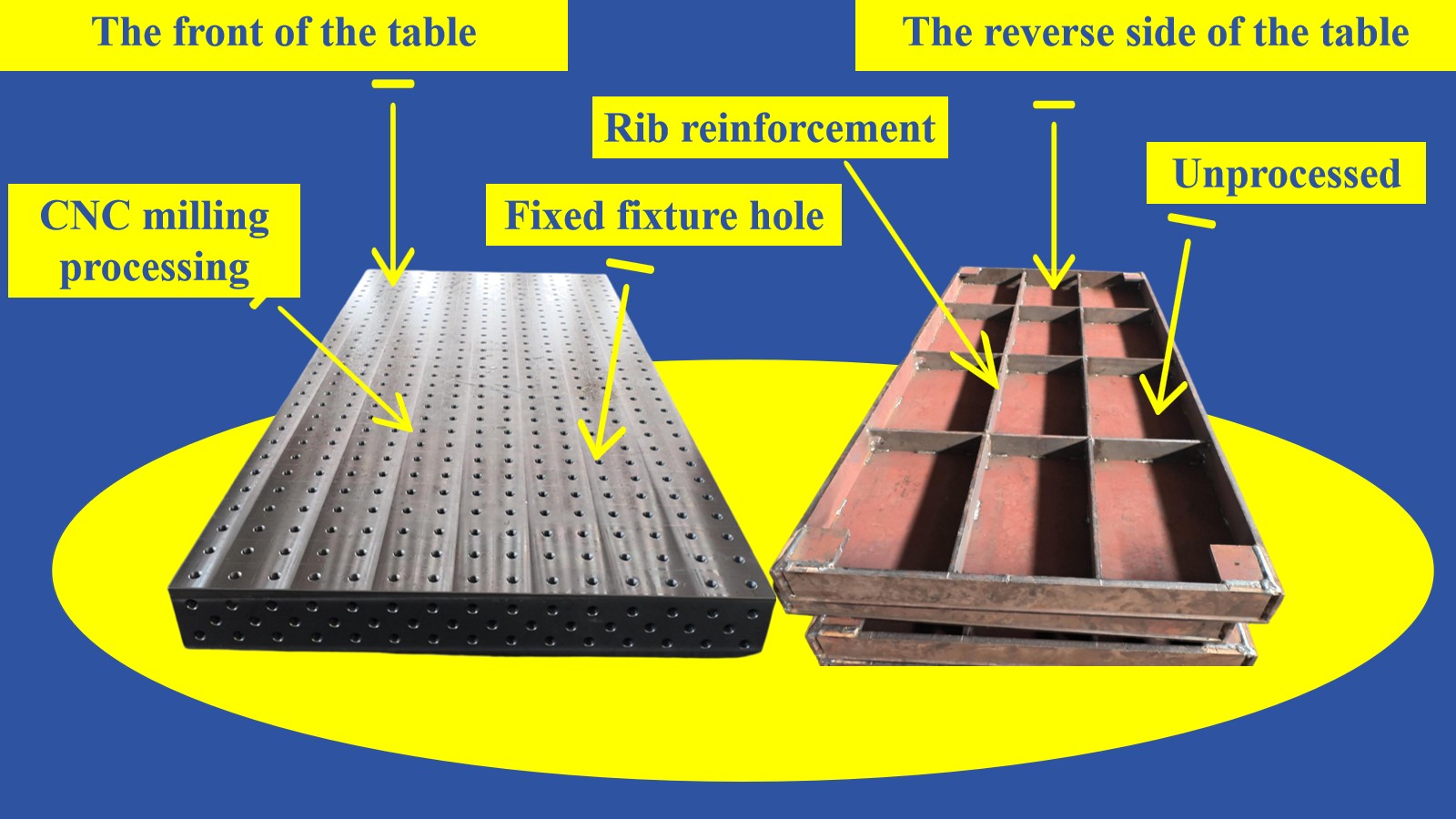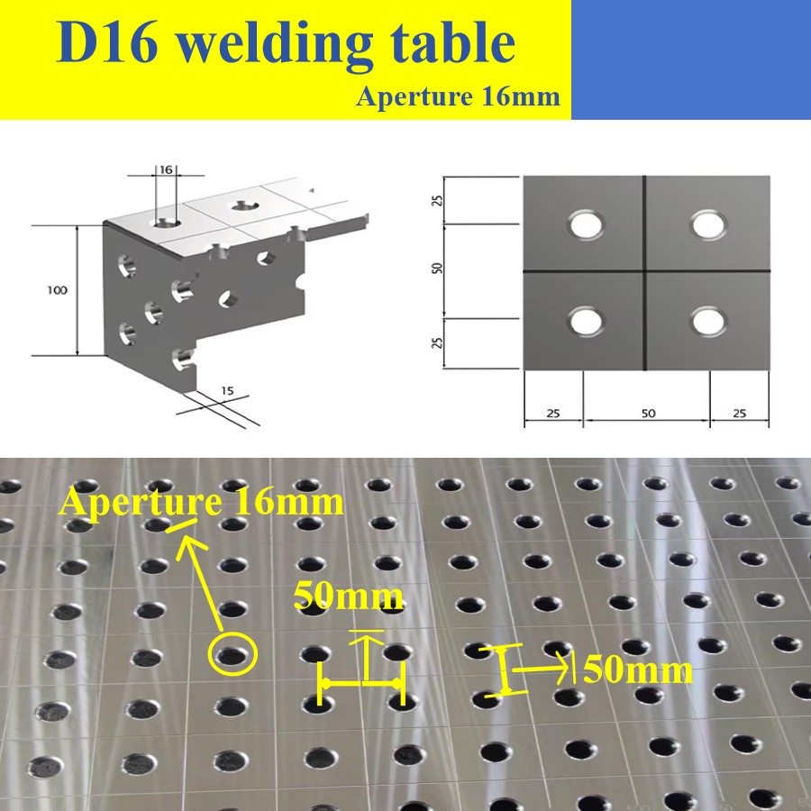 Multifunkční přizpůsobivost: Deska stolu má předvrtané polohovací otvory a montážní polohy upínacích přípravků pro rychlé upevnění různých upínacích přípravků, kompatibilních s různými procesy, jako je ruční obloukové svařování, svařování argonovým obloukem a svařování v ochranné atmosféře plynu.